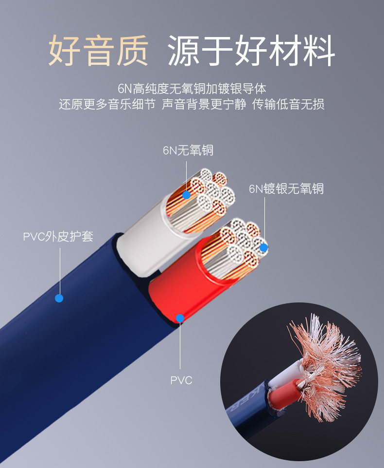 GT-300无氧铜镀银6.5mm音频线